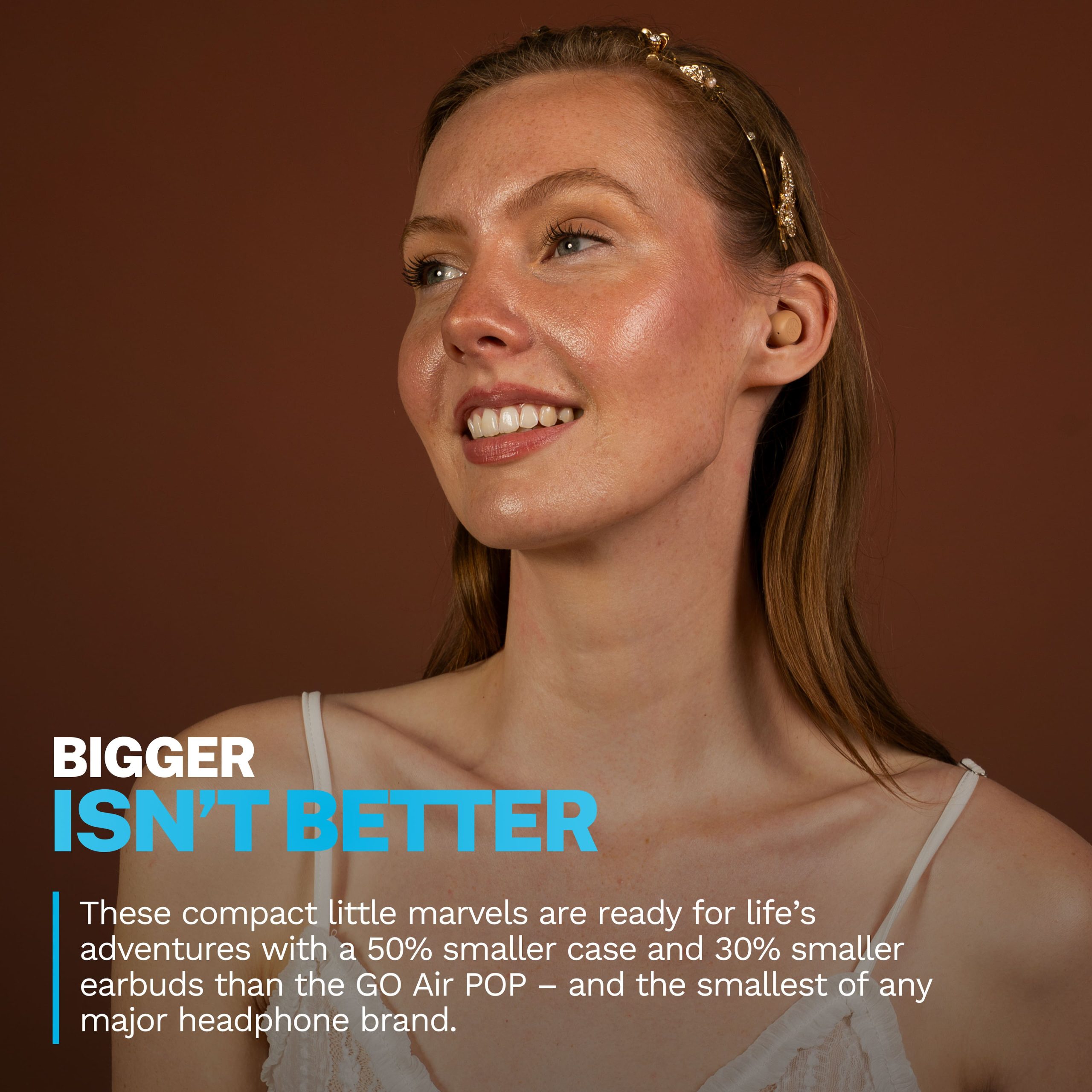 - Compact design with 50% smaller case and 30% smaller earbuds for easy carrying