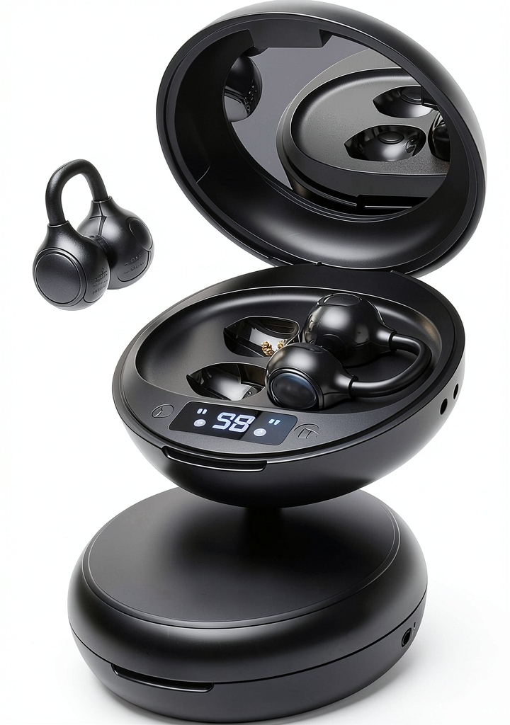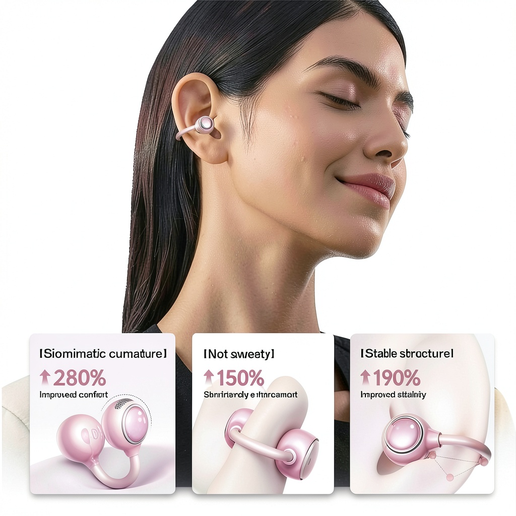 - Open ear clip-on design for secure, pressure-free fit, ideal for long wear and glasses compatibility.