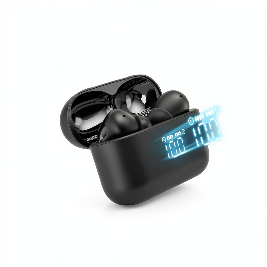 The TOZO T20 wireless earbuds combine advanced audio technology with durable design, featuring a 10mm dynamic horn loudspeaker for rich, immersive sound. Built with an IPX8 waterproof rating, they resist water, sweat, and rain, ensuring reliability during intense activities. The ergonomic in-ear design includes six pairs of soft rubber ear caps for a secure, comfortable fit. A digital LED display on the charging case shows real-time power levels, and the case supports both wireless and USB-C charging for convenience. These earbuds are compatible with the TOZO app, allowing users to customize EQ settings for a personalized listening experience.